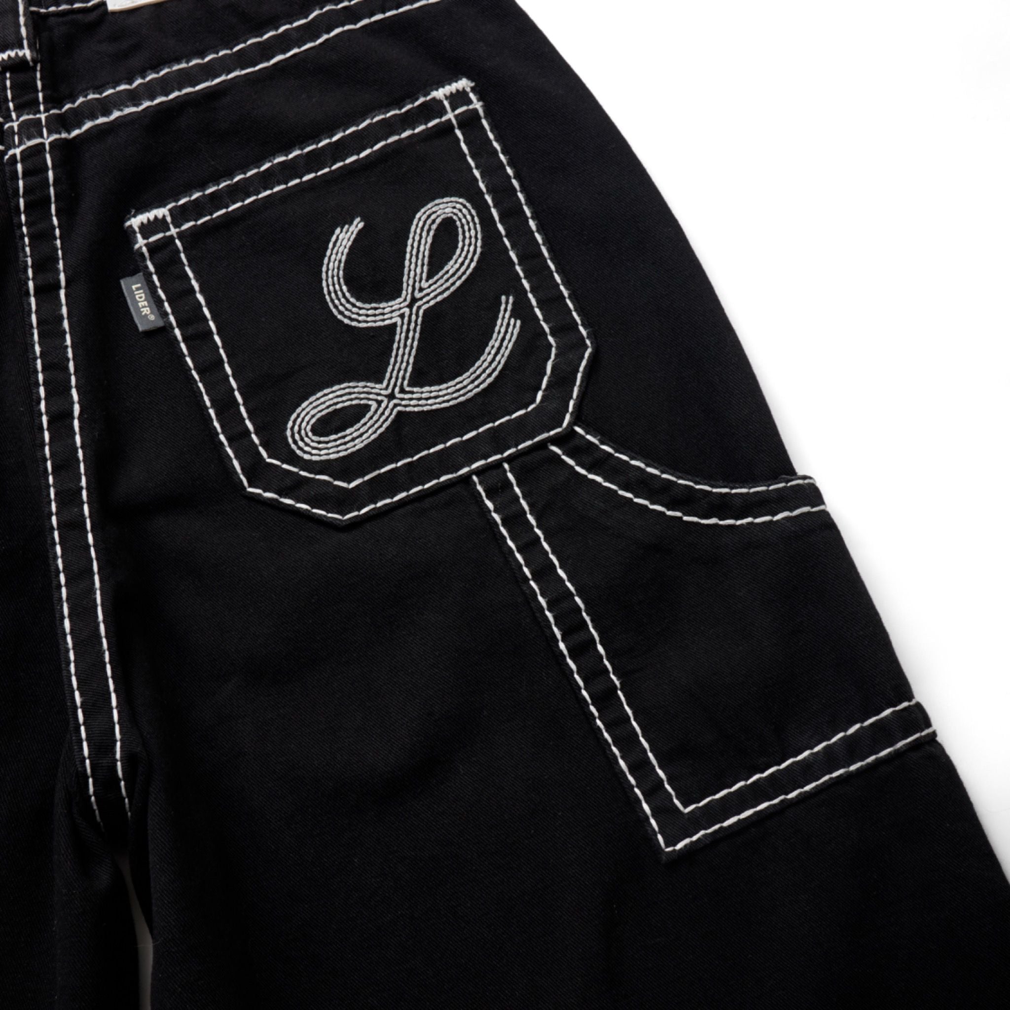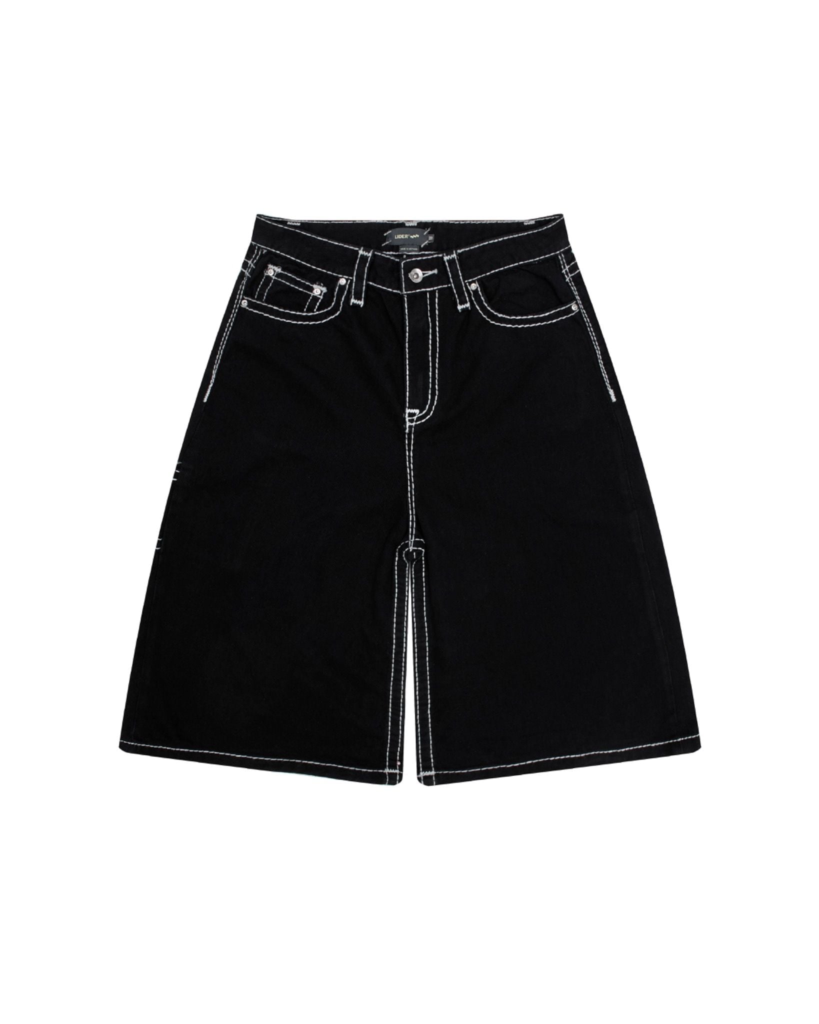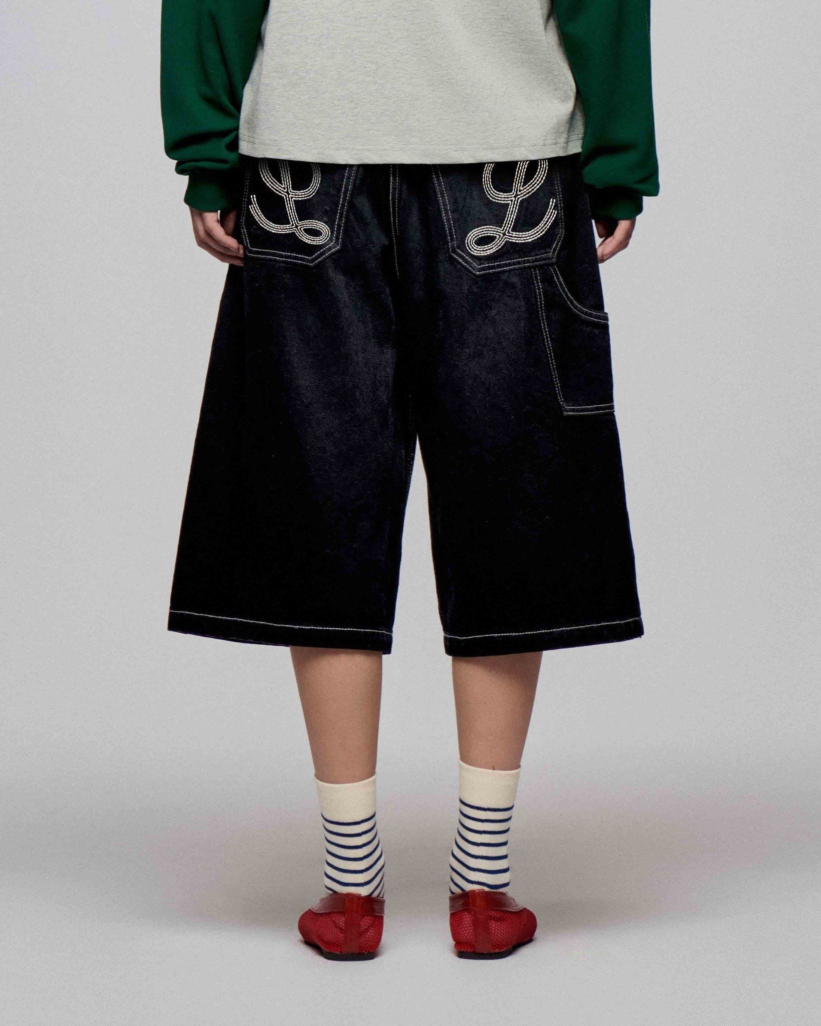 CARPENTER DENIM SHORTS - Stitched Black