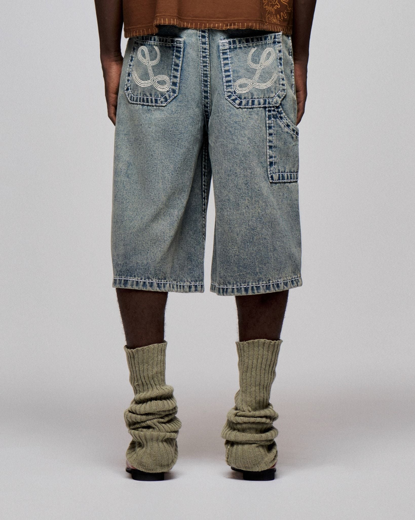 CARPENTER DENIM SHORTS - Stone Grey