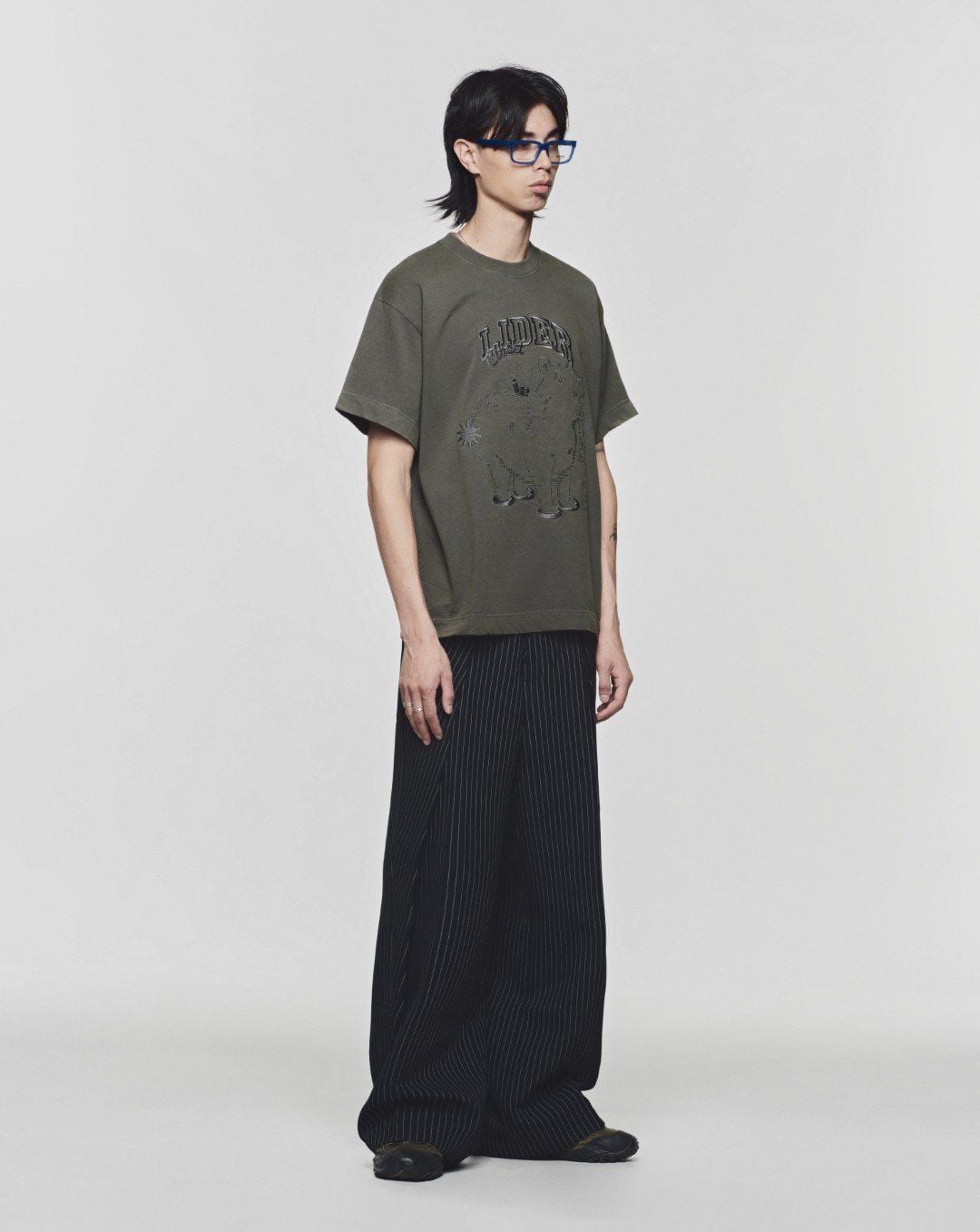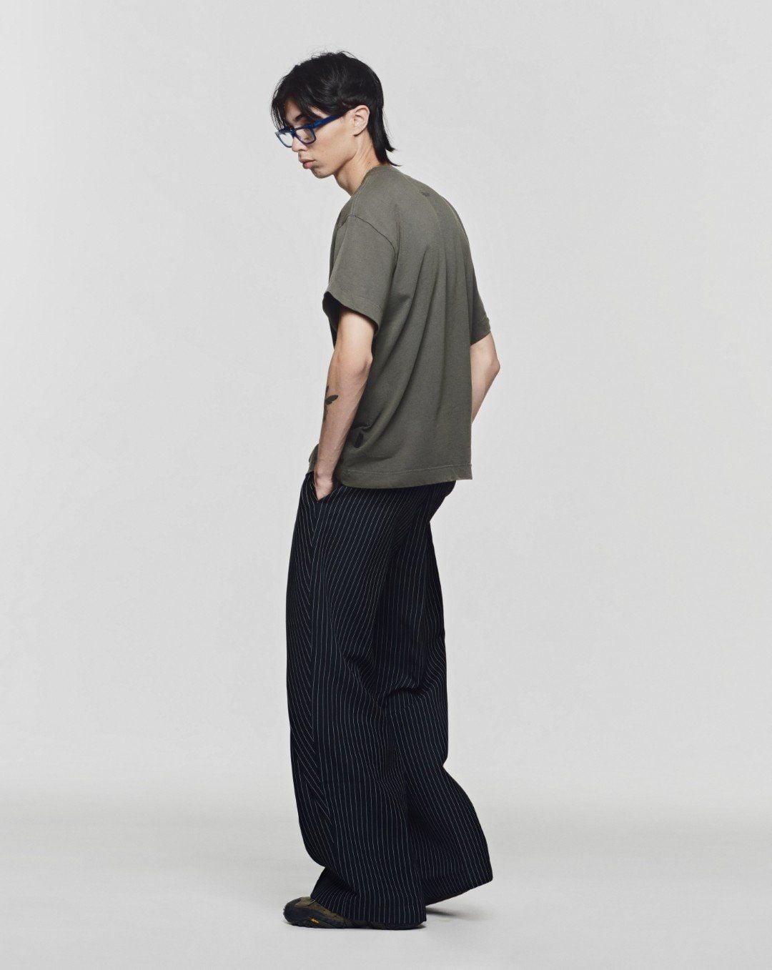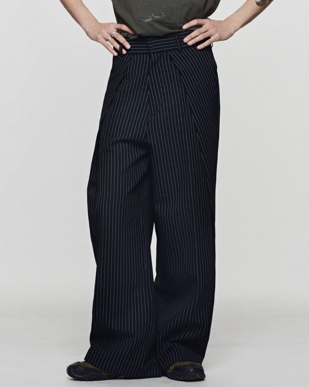 ROLLING WIDE-LEG TROUSERS - Striped Grey ROLLING WIDE-LEG TROUSERS - Striped Grey